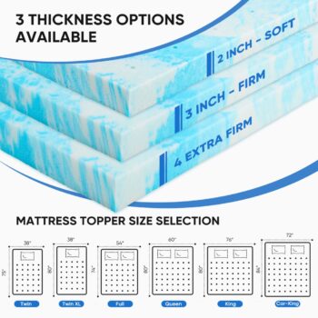 Memory Foam Mattress Topper With Cooling Gel, Pressure Relief & Breathable Comfort Bed Topper